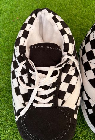 Zapatillas Casa Flamingueo Cuadros Blanco y Negro