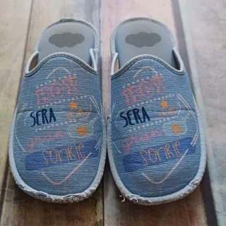 Zapatillas para estar en casa de la marca Natalia Gil, talla 44. Son de color azul y tienen un tejido suave y agradable al tacto. - Ideales para usar en casa. - Cómodas y ligeras. - Perfectas para relajarse.