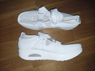 Zapatillas de descanso, no son para hacer deporte, son más como unos zuecos para estar por casa. De verano, tienen rejilla, tira que cruza el empeine y cierra con velcro. Talla 39 china, como una 38. 24,5cm de plantilla. EXCLUSIVAMENTE POR ENVÍO. No entrego en mano. Vendo por Wallapop Envíos. ¡¡15% DE DESCUENTO A PARTIR DE 30€!!