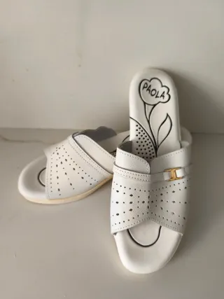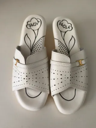 Zapatillas de casa de mujer de verano, abiertas en puntera y talón. Marca Alberola. Ligeras, anatómicas. Color plata. Talla 37. En perfecto estado. Usadas un par de días, me van grandes, me equivoqué en la talla. Confort, cómodas, suela anatómica, señora, calzado, antideslizante, empeine, pie ancho, textil, tacón, clásica, pantufla, estar en casa