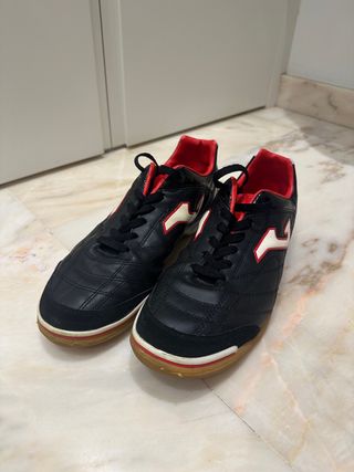 Zapatillas Joma Toledo de fútbol sala para niño, talla 34. Están en buen estado. - Ideales para jugar en pista cubierta. - Diseño deportivo y cómodo. - Dos pares incluidos.