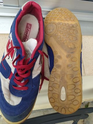 Vendo zapatillas de fútbol sala Lotto, talla 45. Son de color azul y rojo, y están en buen estado, ya que no se utilizaron por fallecimiento - Ideales para jugar en pista cubierta. - Fabricadas con materiales resistentes. - Diseño clásico y deportivo.