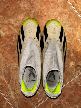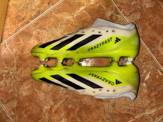 Zapatillas deportivas Adidas Crazyfast en talla 42. Diseñadas para ofrecer agilidad y velocidad en el campo. - Exterior sintético ligero. - Cierre sin cordones para un ajuste ceñido. - Suela exterior para césped artificial o natural. *Están un poco sucias, vienen con cordones, precio negociable*