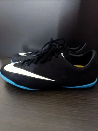 Zapatillas deportivas Nike mercurial eh poco uso con detalles en azul. - Diseño deportivo. - Cierre con cordones. - Suela de goma.