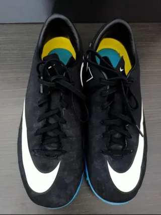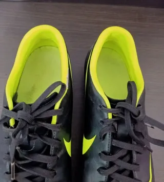 Vendo zapatillas de fútbol Nike en perfecto estado. Son de color negro y amarillo, ideales para jugar. - Diseño deportivo y cómodo. - Suela en buen estado. - Listas para usar.