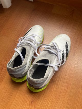 Zapatillas deportivas Adidas Predator. Mirar fotos. Agujero que no cala en pie izquierdo - Modelo Predator EST 1994. - Talla 38 1/3. - Combinación de colores blanco y verde.