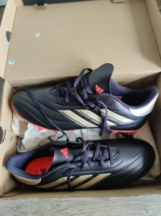 Zapatillas de fútbol Adidas Copa Pure 2 Club FxG. - Talla 44 2/3. - Color negro violáceo. - Suela con tacos para césped. - Cierre con cordones. - A estrenar, completamente nuevas.