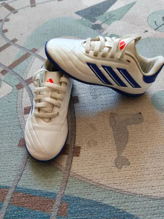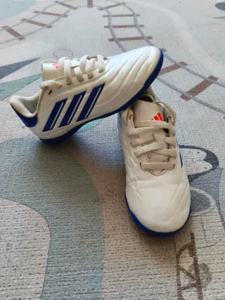 Zapatillas deportivas Adidas Copa Pure en talla 28. Las ha usado 4/5 veces por cambio de talla. - Color blanco con detalles en azul. - Diseño deportivo.