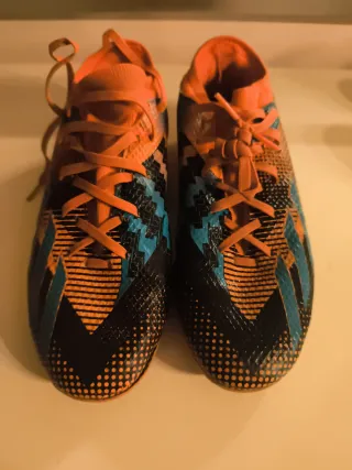 Zapatillas futbol sala de niño marca Adidas. Las vendo porque tallan pequeño y al estar personalizadas ( Messi 10) no me las cambian,están sin estrenar nuevas en su caja. Son un 35/5 pero tallan pequeño como una talla menos.