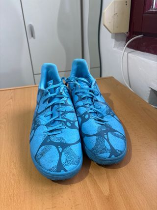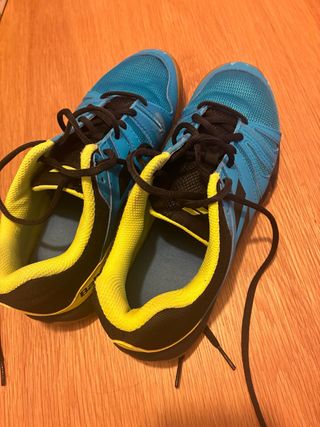 Zapatillas de fútbol sala en color amarillo y azul. Apenas se han usado 4 veces - Talla 38. - Cierre con cordones. - Suela de goma. Posibilidad de probar