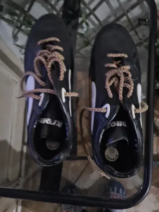 Zapatillas de fútbol sala Umbro, están bien de la parte de arriba y la suela agarra bien. Tenían una lengüeta larga pero está cortada y queda como una lengüeta normal. Son talla 45. 29 cm