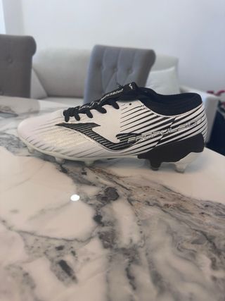 Zapatillas de fútbol con tacos, ideales para jugar en césped. - Diseño moderno en blanco y negro. - Tacos para un agarre óptimo. - Materiales de calidad para mayor durabilidad.