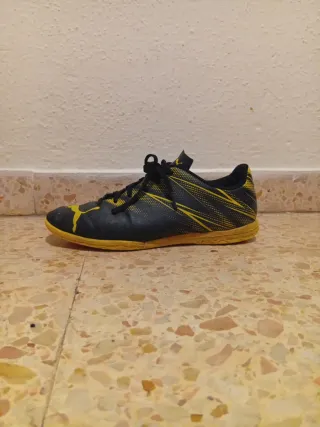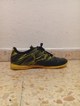 Zapatillas de fútbol Puma en color negro con detalles amarillos. - Diseño deportivo. - Cordones negros. - Logo Puma en la lengüeta y lateral. -Solo se acepta pago en Efectivo