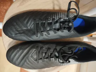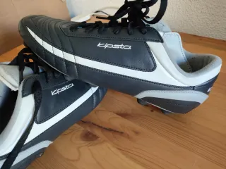 Zapatillas de fútbol con tacos de la marca Kipsta. - Usadas 3 veces. - Talla 44. - Color negro y blanco. - Para cesped. - Diseño deportivo. - Cierre con cordones. deportivas, nike, adidas, reebook, futbol 11.
