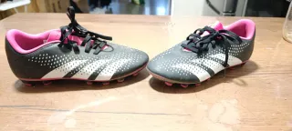 Zapatillas de fútbol con tacos, ideales para césped. En perfecto estado. Usadas 2 veces. - Diseño en color negro con detalles en rosa. - Tacos para un buen agarre en el campo.