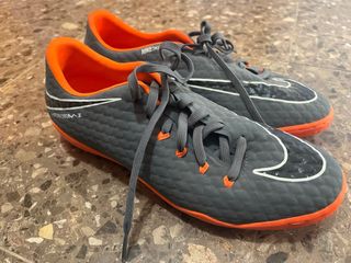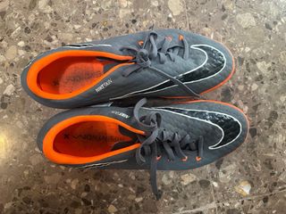 Zapatillas de fútbol sala Nike sin estrenar. - Diseño moderno en color gris. - Detalle de swoosh naranja. - Talla 38.