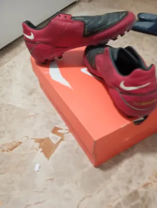 Botas de fútbol Nike con un diseño llamativo. Modelo Neymar. Las zapatillas las habré usado unos 8 partidos más o menos. - Color principal dorado con detalles en rojo. - Cordones blancos. - Suela con tacos.