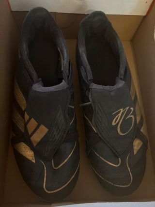 Zapatillas de fútbol Adidas Predator en talla 36.5. - Diseño en color negro y dorado. - Cierre con velcro y cordones.