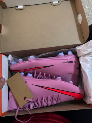 Zapatillas de fútbol Nike Mercurial en color rosa con detalles en rojo. - Diseño deportivo. - Tacos para césped. - Cierre de cordones.