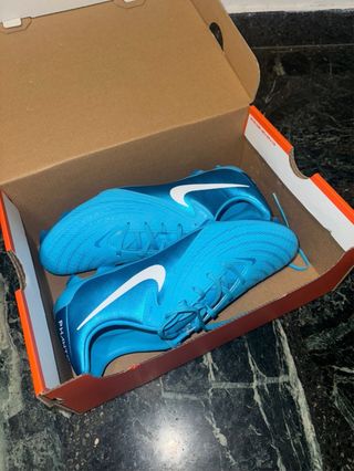⚽️ Zapatillas de Fútbol Nike Phantom – Azul Turquesa – Talla 41 🔹 Diseño moderno y llamativo. 🔹Cierre con cordones 🔹 Talla 41 🔹 Uso: Solo 3 semanas 🔹 Sin caja (box) Las vendo porque no las uso.
