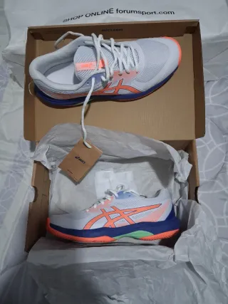 ¡Zapatillas tope de gama a estrenar! Talla 40, color negro. El modelo más rápido y ligero de Asics para pádel. Lo mejor: FLYTEFOAM: Amortiguación técnica muy ligera. SPEEDTRUSS: Agilidad total en giros y arranques. Suela AHARPLUS: Agarre profesional y máxima durabilidad. Upper: Malla transpirable y ajuste perfecto. Perfil: Ideales para jugadores dinámicos que buscan velocidad y transiciones rápidas en la red. Calidad profesional para llevar tu juego al siguiente nivel. ¡No dejes que se escapen, mejora tu juego hoy mismo con las mejores zapatillas del mercado!