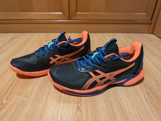 Zapatillas deportivas Asics, ideales para pádel o entrenamiento. - Tienen muy buen agarre en pista,las cambio por llevar ahora unas bullpadel. - Son una talla 42'5 pero yo uso un 42. - Diseño moderno en tonos azules y negros. - Materiales transpirables para mayor comodidad. - Suela de goma para un buen agarre.