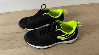 Zapatillas deportivas Bullpadel en color negro con detalles en naranja. Perfectas para pádel. Usadas en una única ocasión por talla pequeña. - Diseño moderno y deportivo. - Cierre con cordones. - Suela de goma para mayor agarre.