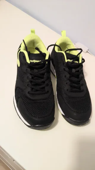 Zapatillas de pádel Bullpadel en color negro con detalles en verde lima. - Diseño deportivo y moderno. - Cierre de cordones. - Suela de goma. Solo se han usado dos veces