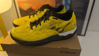 Zapatillas deportivas Mizuno Wave Enforce para pádel. - Color amarillo y negro. - Talla 43.