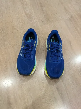 Zapatillas deportivas New Balance modelo 1080 v14. Usadas 2 veces (20km), las vendo ya que no me vienen bien para una lesión de rodilla. - Diseño en color azul con detalles multicolor. - Parte superior de malla transpirable. - Suela con amortiguación. - Cierre de cordones.