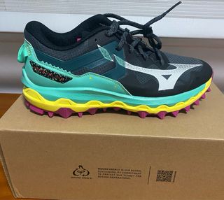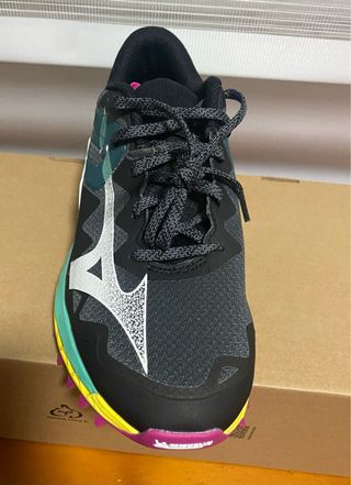 Zapatillas trail running deportivas Mizuno Wave Mujin 9, talla 38, completamente nuevas, A ESTRENAR, con su caja. Compradas en el Corte Ingles. - Diseño moderno con detalles en negro, verde y amarillo. - Suela con tacos para mayor tracción. - Cierre de cordones. - Logo de Mizuno en los laterales