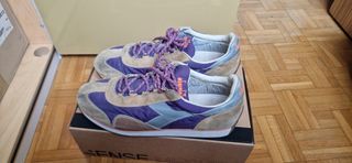 Zapatillas deportivas Diadora con un diseño moderno y llamativo. - Combinación de colores beige y morado. - Cordones morados. - Detalle de logo en la lengüeta.