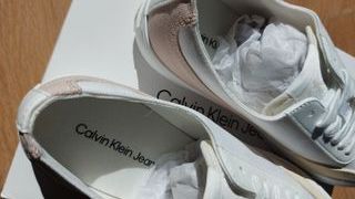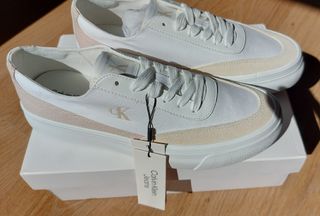 Zapatillas deportivas Calvin Klein para mujer. - Color blanco y beige. - Talla 41.