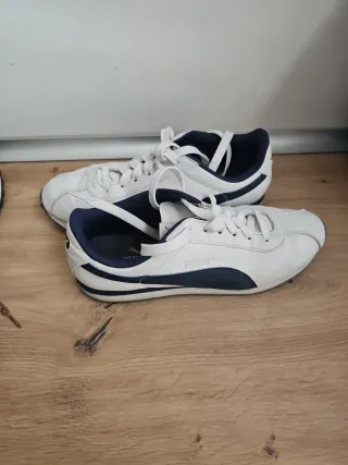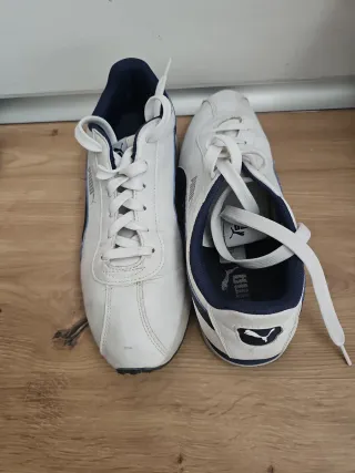 Zapatillas deportivas Puma de estilo casual. - Combinación de colores blanco y azul. - Cierre con cordones.