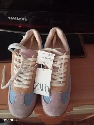 Zapatillas deportivas de la marca Zara. - Diseño con paneles en varios colores. - Cierre con cordones. - Suela de goma.