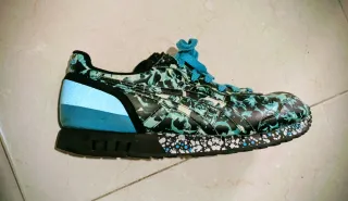 Zapatillas deportivas Asics Onitsuka Tiger x Andrea Pompilio X edición especial del 2014. - Estampado multicolor con tonos teal. - Cordones de color azul. - Detalle de logo en la lengüeta.
