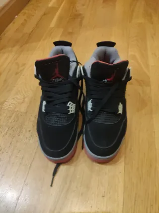 Zapatillas deportivas Nike Air Jordan 4. - Diseño en color negro con detalles en rojo. - Logo de Jordan Flight en la lengüeta.