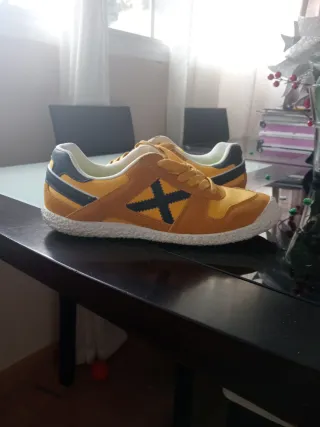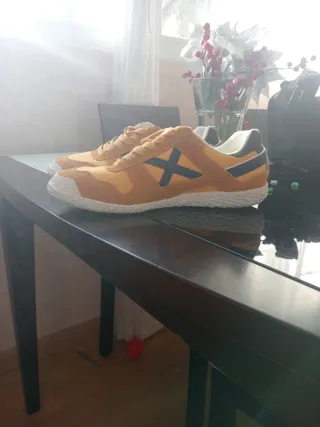 Zapatillas Munich para fútbol sala. - Color amarillo y azul. - Diseño deportivo.