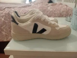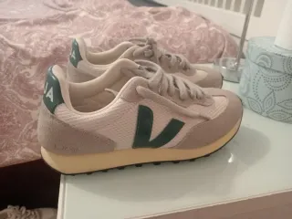 Zapatillas deportivas Veja para mujer en tonos beige y verde. Apenas usadas - Diseño moderno y cómodo. - Detalle de logo en contraste.