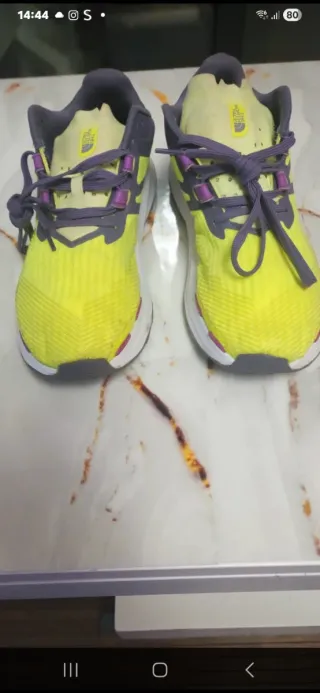 Zapatillas de Mujer para asfalto. Neutras. Usada en 3 carreras. Suela Continental perfecta. No se adaptan a mi forma de correr. Comodas como un guante. Yo gasto 37 1/2 y estas me van bien. En su caja original. Estan perfectas.