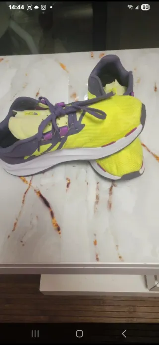 Zapatillas deportivas The North Face con un diseño llamativo. - Combinación de colores morado y amarillo. - Cierre con cordones. - Logo de The North Face en la lengüeta.