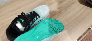 Zapatillas diseñadas para la práctica del atletismo, con un llamativo diseño, unisex. Sin usar. - Suela con tacos para un agarre óptimo. - Cierre de cordones. - Parte superior de malla transpirable.