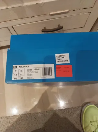 Zapatillas Adidas M Campus. - Modelo IG7866. - Color: Sello's Fesyello. - Talla: 42 (UE), 9 (US), 8 (UK), 270 (CM), 265 (JAP). - Suela: Ausoljalsol. - Fabricadas en China.