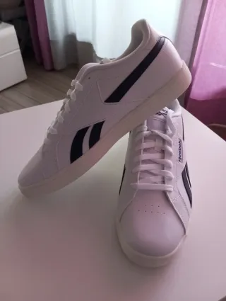 Zapatillas deportivas Reebok para hombre. - Diseño clásico en blanco con detalles en azul. - Cierre con cordones. - Logo de Reebok en el lateral y la lengüeta. - Nuevas a estrenar no se a usado - No quedó presencial solo envio