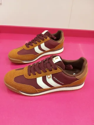 Zapatillas deportivas de la marca XTI en tonos marrón y blanco. Un diseño clásico y versátil. - Detalle de logo en la lengüeta. - Rayas laterales en contraste. - Suela de goma. - Nuevas a estrenar no se a usado - No quedó presencial solo envio