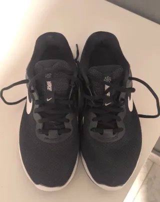 Zapatillas deportivas Nike en color negro con detalles blancos. - Diseño moderno y ligero. - Cierre con cordones.