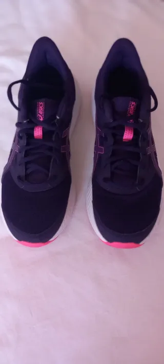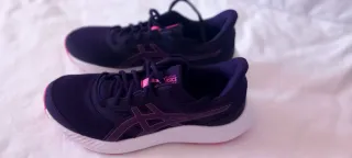 Zapatillas deportivas ASICS con un diseño moderno y llamativo. - Combinación de colores morado y rosa. - Cierre con cordones para un ajuste seguro. - Detalle de logo en la lengüeta.