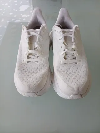Zapatillas Hoka Clifton 9 en color blanco. Perfectas para correr o para el día a día. - Diseño ligero y transpirable. - Amortiguación para mayor comodidad. - Suela de goma duradera. Se venden en caja original.