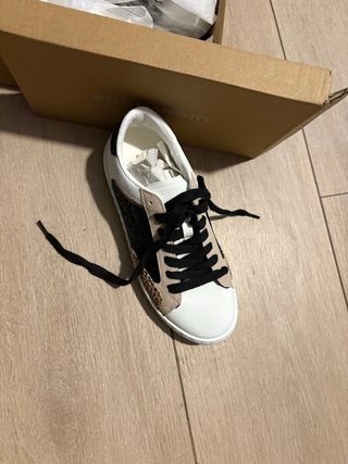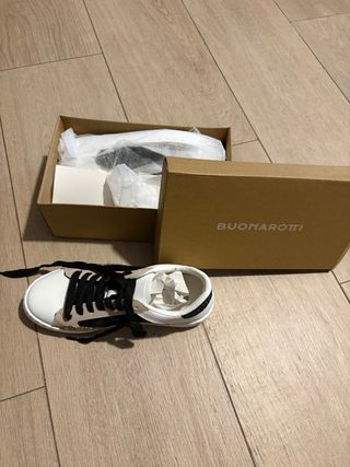 Zapatillas deportivas de la marca Buonarotti. - Diseño con detalles en animal print. - Combinación de blanco y beige. Talla 38. Nuevas y en su embalaje original