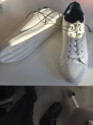 Zapatillas deportivas con un diseño moderno y llamativo. - Combinación de colores blanco y dorado. - Material de malla transpirable. - Cierre con cordones. -Un solo uso para probarmelas. -Comodas